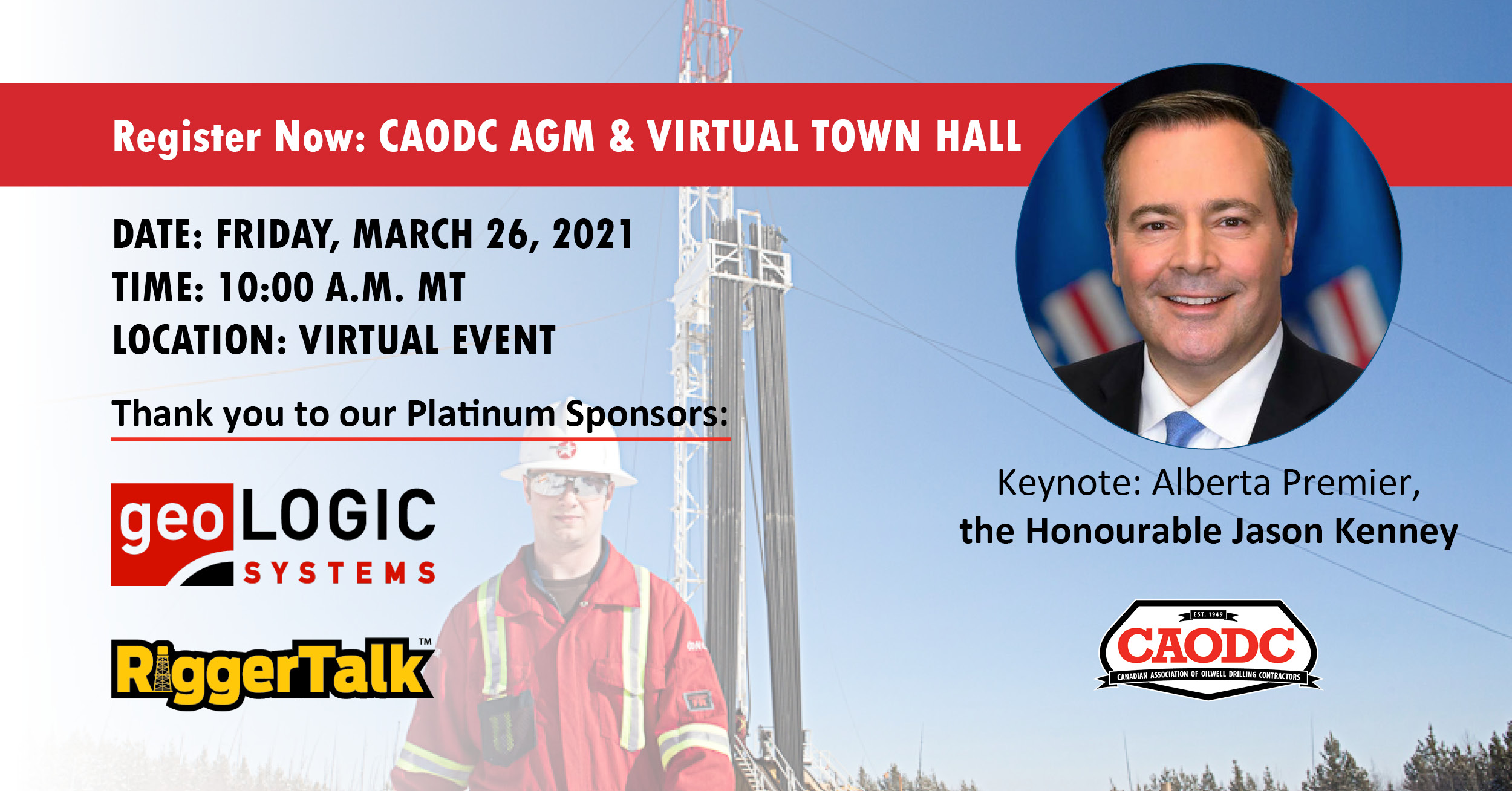 Join the CAODC on Friday, March 26 for their AGM & Virtual Town Hall with Alberta Premier, the Honourable Jason Kenney.