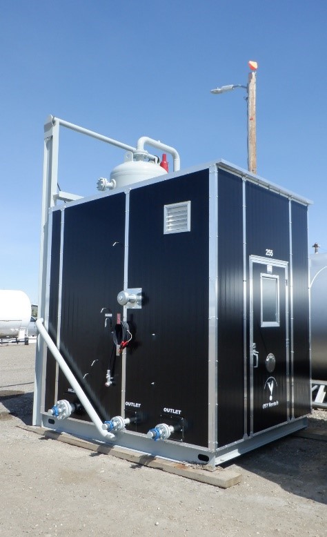 10’x42’ Vaportight Production Package c/w 24”x5’ 285 psi inlet separator, 2” Inlet ESD, 2” Jr. Meter run with bypass, 2” Kimray back pressure regulator, Barton 2 pen recorder, 2” detonation arrestor,200’ of flow line, 320’ 2” flare line, Fully compliant burner management system, High level and High Pressure Shutdowns on both tank and separator, 4”x2”x40’ Flarestack, 4-10’x2” flexlines, 12”x24” Catadyne explosion proof heater, Insulated foam panel end hutch w/ panic door hardware, and 3” Pressure/vaccum pipe away vent. $165,000 Purchase, Inquire about monthly rental