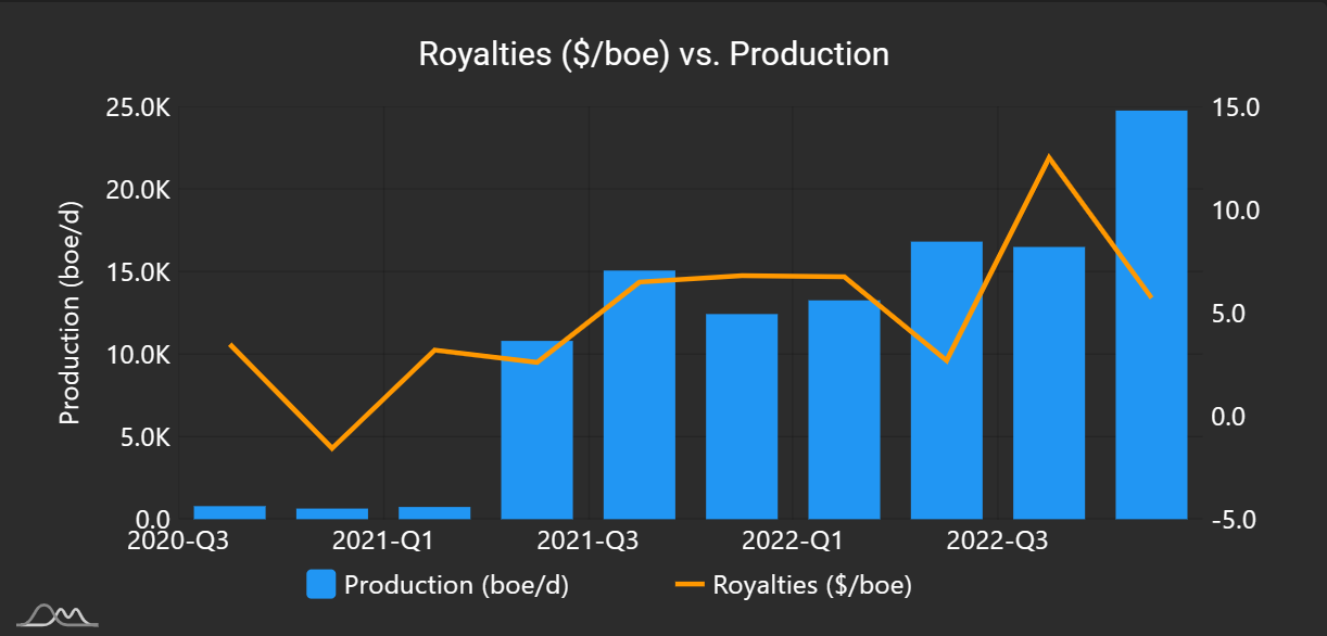 ** Royalty costs are unavailable for Crescent Point in Q4 2022. As such, we have not included their Q3 2022 measure in the median calculation.
