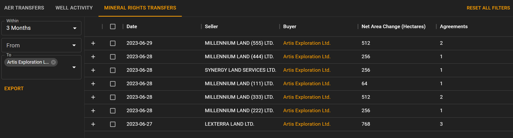 It was just a week ago that we published a Private Company Review for Artis Exploration, and now our mineral rights transfer tool has picked up more activity from the company.