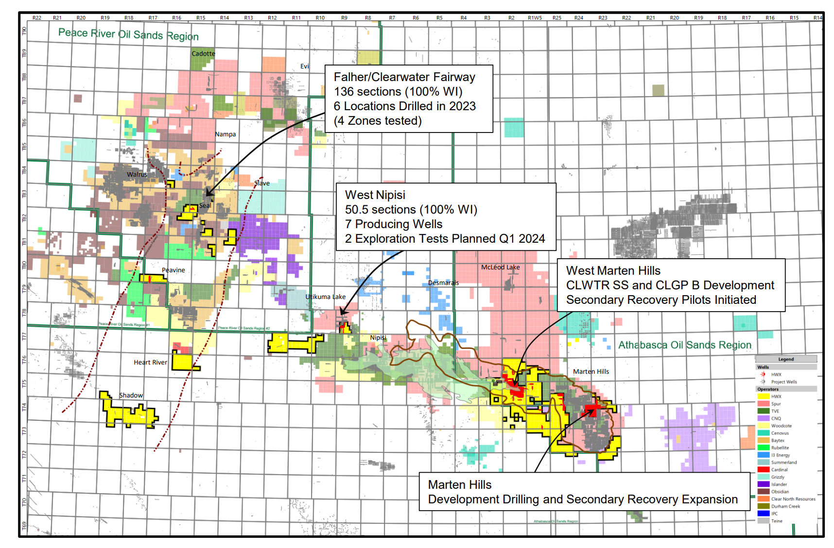 A new presentation from Headwater Exploration revealed additional land in the Heart River area, under what Headwater refers to as the Falher/Clearwater fairway. Below are the two versions of the company’s land map (Figure 1 and 2), both from January 2024 Headwater corporate presentations. The newest version shows the additional acreage in the lower left area of the company’s map.